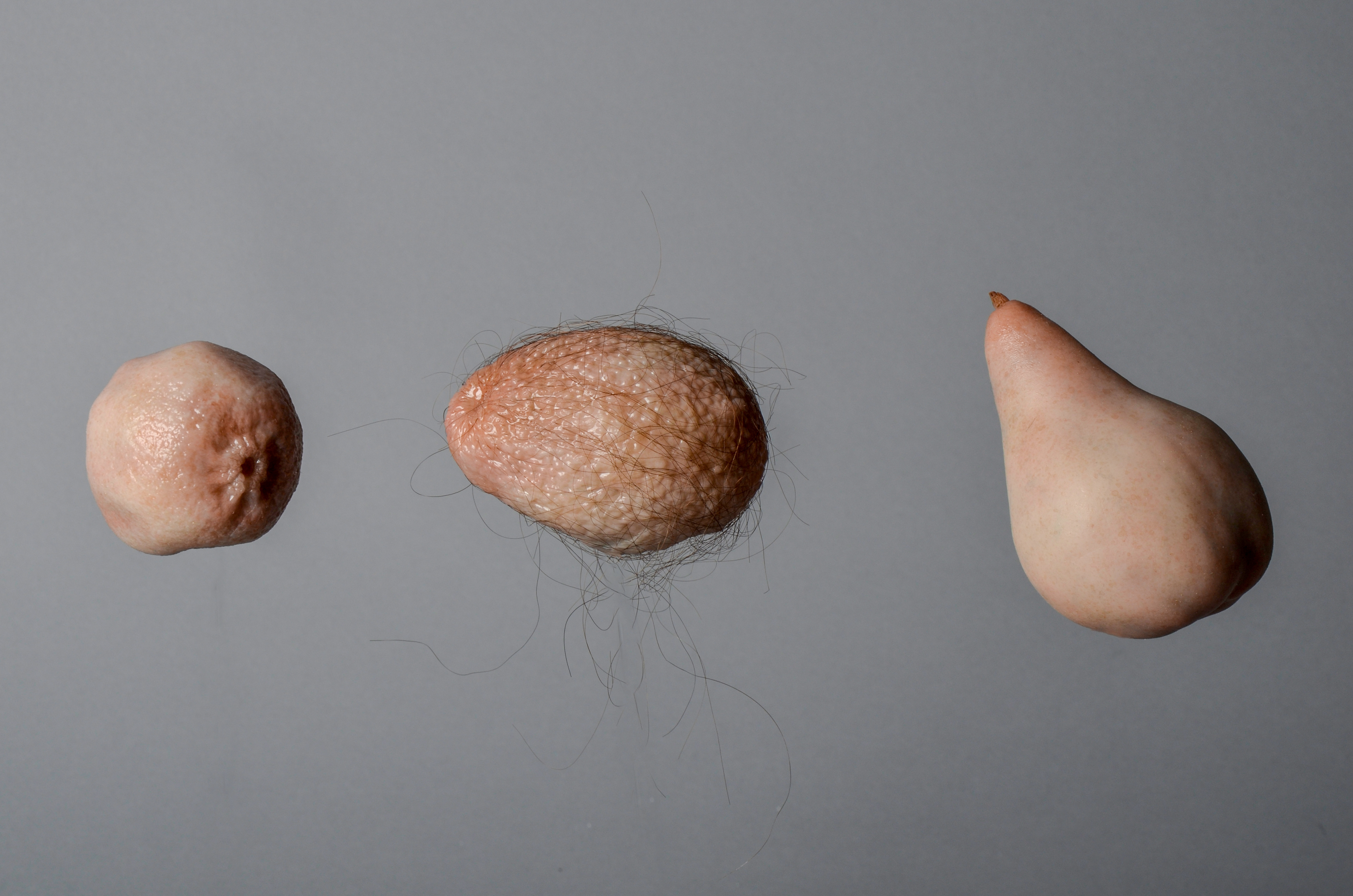 "Fruchtfleisch" was born from the idea of playing with unconscious expectations. The fleshy appearing surface sets the object (fruit) in a new context.